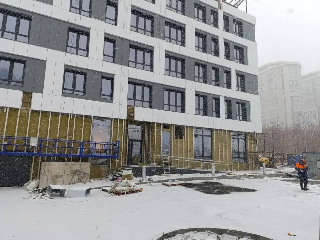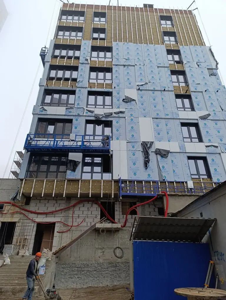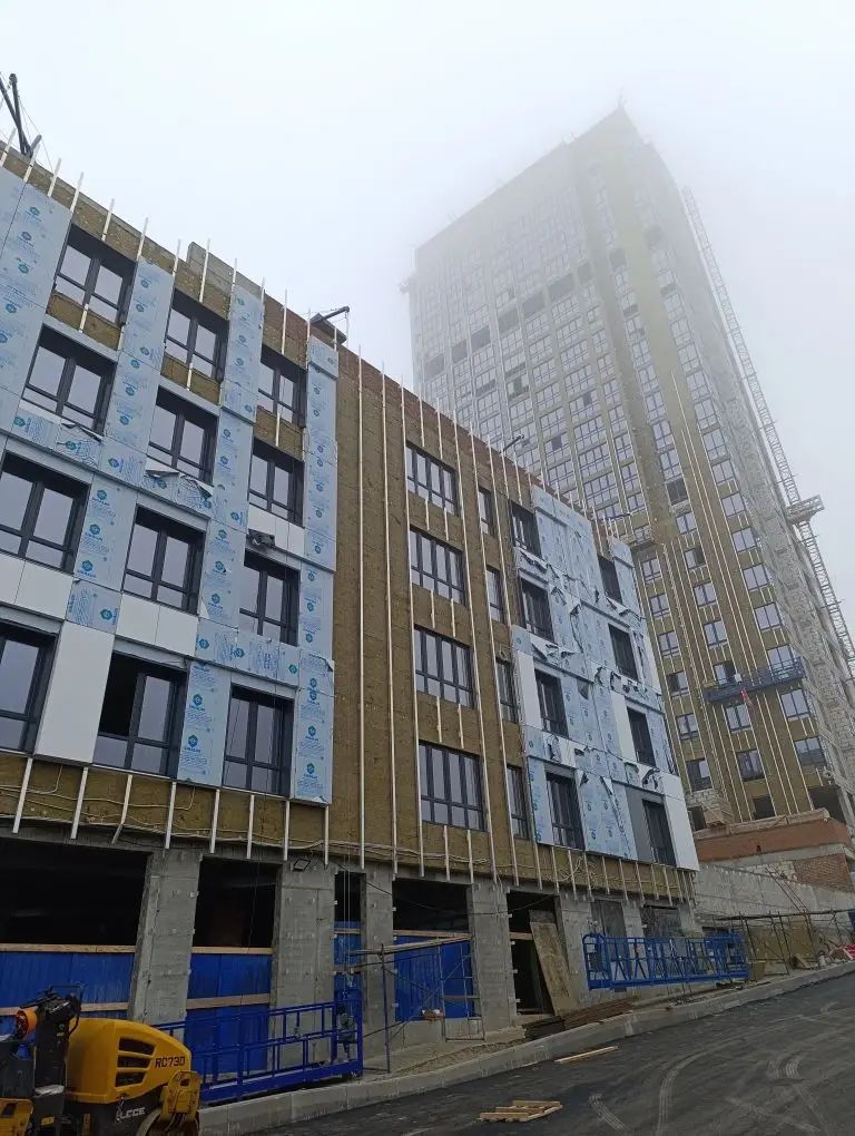 - Устройство вентилируемого фасада (установка кронштейнов, утепление) - Северная башня 3-9 этажи, южная башня 2-8 этажи;